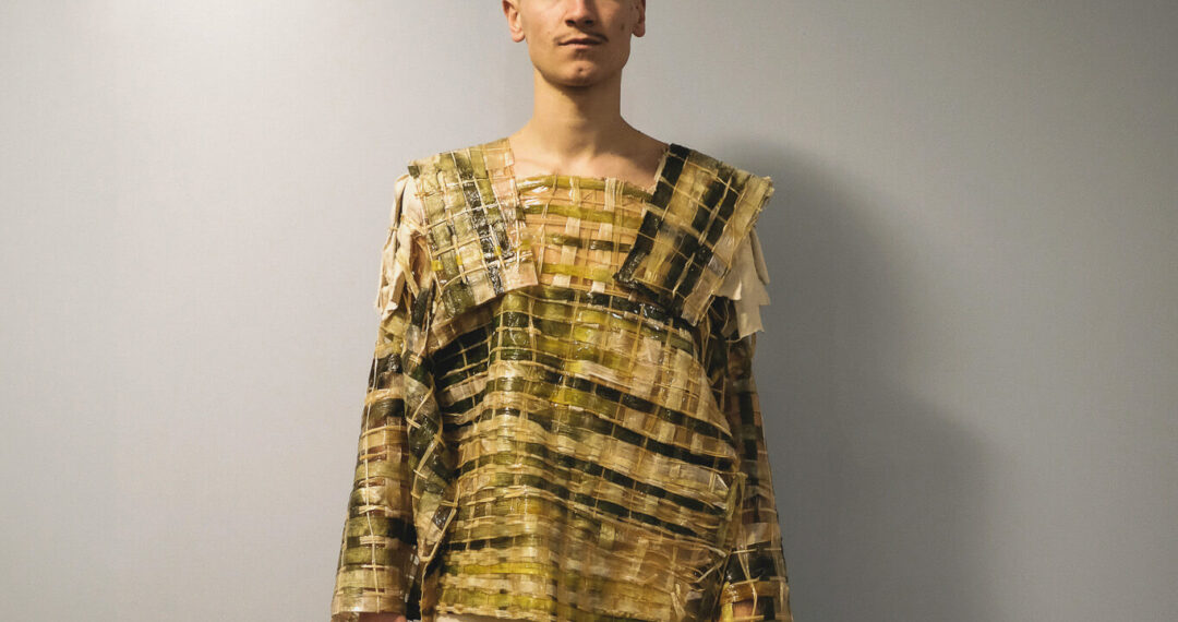 C’est dans cette démarche quelque peu baroque que nous avions demandé à des étudiants en design de repenser l’habit, la matière et la mode, autour du verset biblique : « Un temps pour naître, et un temps pour mourir ». Par souci de transparence, avouons-le : la commande est un peu déraisonnable. Quelle ne fut pas notre surprise lorsque nous découvrîmes ce tissage de charme principalement composé de poireaux.