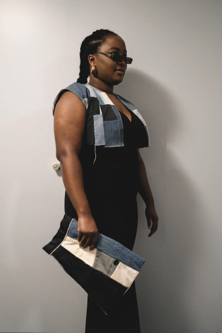 C’est la silhouette audacieuse et le regard taquin de Michelle qui nous présentent l’une des pièces iconiques de la marque lausannoise Perle rare. « Un temps pour déchirer, et un temps pour coudre ». Lorraine avait à cœur de faire les deux en même temps, avec la conviction qu’on pouvait habiller ainsi tous les corps et toutes les femmes. Et l’upcycling fut : découper, coudre, transformer, redonner vie à des matières nues et ajouter au travail des artisans un sursis glorieux.