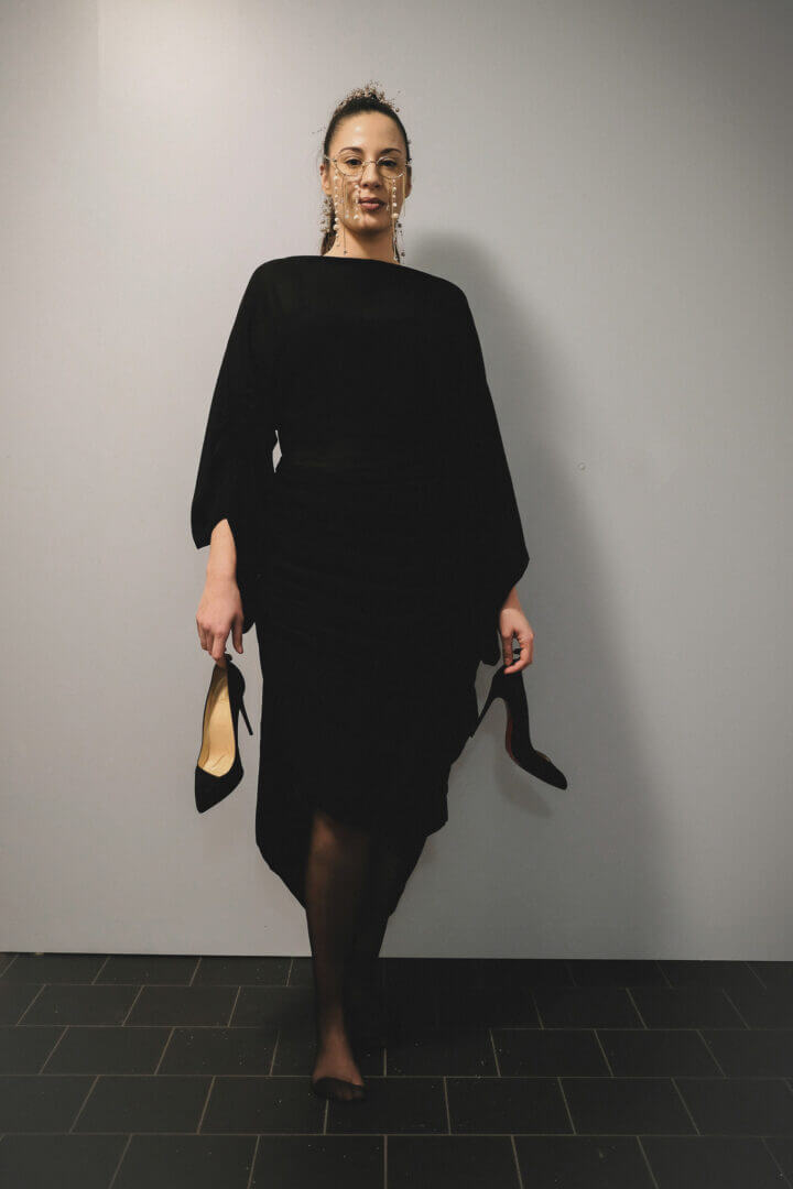 C’est le port altier de Noémie qui interprète le verset « Un temps pour pleurer, et un temps pour rire ». Les larmes, qui accompagnent la joie comme la souffrance, puisent leurs eaux à la même source. L’une comme l’autre nous ramènent à ce qui nous est intrinsèquement précieux, parfois perdu, souvent retrouvé ou fraîchement créé. C’est dans cette perspective que cette tenue doit être comprise, comme un écrin, avec au cœur, une perle.