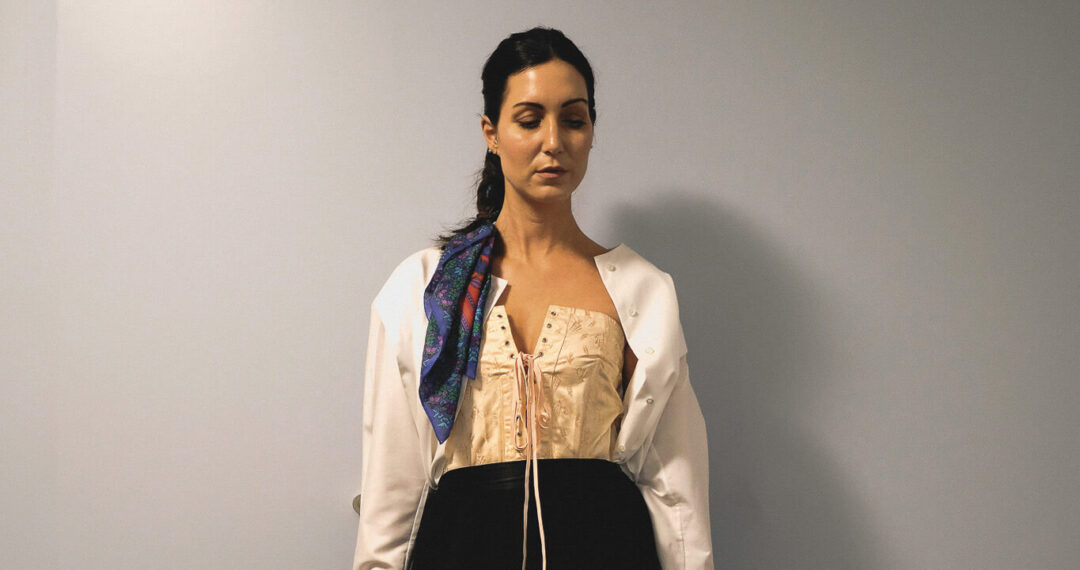 C’est sous la main habile de Laura, créatrice-chemisière de la marque Capsule en Coton, que se dessine une tenue aux allures de danse. Le tulle noir du deuil dévoile la frivolité timide d’un corset glané dans les tiroirs d’Astride. Le regard songeur de Marine surplombe en toute tendresse une invitation à danser sous nos larmes. Celles qui tempèrent nos chagrins et exultent nos liesses, accompagnées de quelques mots chuchotés comme un demi serment : « Ceux qui sèment dans les larmes récoltent avec des chants de joie ».